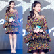 中国风提花刺绣明星同款旗袍重工钉珠流苏露肩修身连衣裙主持礼服