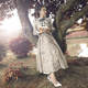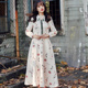 低俗小説 原创秋冬新款文艺学院风印花单排扣蝴蝶结连衣裙仙