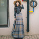 低俗小説 2017新款文艺复古蝴蝶结衬衣+毛呢格子半身长裙两件套仙