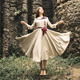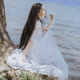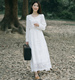 低俗小説 复古重手工刺绣蕾丝大摆长袖长裙 白色飘逸连衣裙仙