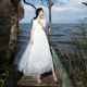 低俗小説 原创圆领透视网纱刺绣连衣裙 波西米亚海边度假长裙超仙