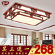 中式吸顶灯长方形客厅灯led遥控实木仿古中国风木艺卧室羊皮灯具