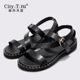 罗马男士凉鞋真皮夏季韩版个性厚底防滑休闲鞋2017新款凉拖鞋潮男