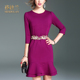 莎杜兰春装新款系带收腰七分袖连衣裙气质显瘦鱼尾裙女秋冬裙0807