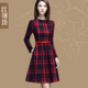 2017新款春秋格子连衣裙春装长袖中长款气质立领a字裙泡泡袖减龄