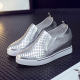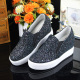 春秋季乐福鞋厚底女鞋板鞋亮片圆头松糕鞋一脚蹬休闲帆布鞋潮鞋女