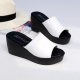 2017夏季新款黑色厚底防滑凉鞋坡跟高跟真皮一字拖女鞋防水台凉拖