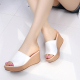 夏季时尚新款真皮牛皮沙滩凉拖凉鞋厚底坡跟松糕高跟防滑一字拖女