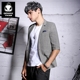 GENANX闪电潮牌 男士复古条纹小西装休闲韩版五分袖西装短袖外套