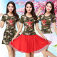 2017新款春夏水兵舞服装女广场舞演出迷彩服长短袖裙裤运动套装
