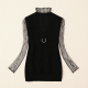 休闲套装女春装时尚潮2017新款黑色气质针织背心女马甲网纱两件套