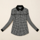 2016秋季新款格子衬衫女长袖 中长款韩范宽松外套黑白格子上衣