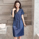 2017年春季短袖气质宽松腰套头圆领纯色牛仔布连衣裙女休闲牛仔裙