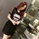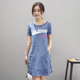 牛仔拼接连衣裙女2016夏新款韩范女装修身T恤裙时尚百搭短袖中裙