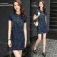 2017新款夏装OL气质休闲短袖牛仔连衣裙女宽松大码时尚韩版牛仔裙