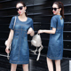 2017夏季新款女装韩版修身休闲短袖牛仔连衣裙中长款时尚宽松裙子