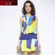 小虫2015夏季新款大摆背心裙压褶印花高领修身显瘦套头复古连衣