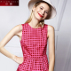 小虫2017新款修身粉红色女裙子圆领格子无袖连衣裙女