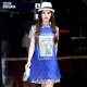 MIKIBANA新款 亮片绣花性感镂空后背收腰大摆牛仔无袖连衣裙