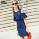 MIKIBANA新款 性感一字露肩荷叶边收腰包臀牛仔裙短裙