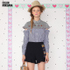 MIKIBANA2017春装新款 可爱木耳边显瘦竖条纹绣花露肩衬衣女 SM71