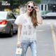 MIKIBANA夏装新款 自由拼接印花欧根纱T恤宽松短袖女 QC