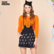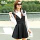 MIKIBANA新款 可爱猫咪绣花减龄修身背带裤高腰吊带阔腿短裤女