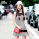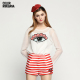 MIKIBANA春装新款 学院风镂空拼接收腰印花长袖条纹连衣裙 SM61
