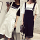 2017春夏新款简约毛边牛仔连衣裙背带裙韩范学院风复古中长裙子潮
