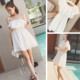 韩版夏季女装新款性感一字娃娃领短袖蕾丝连衣裙甜美潮仙气短裙子