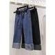 bf风宽松翻边九分裤子女韩版原宿潮 ulzzang春夏季阔腿直筒牛仔裤