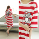 韩国代购宽松显瘦大码半袖T恤女装胖mm超长款过膝休闲条纹连衣裙