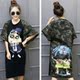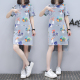韩国春夏大码女装宽松超长款T恤连衣裙卡通亮片开叉休闲过膝长裙
