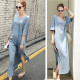 春夏新品慵懒百搭简约圆领纯色半袖长款打底衫T恤侧开叉连衣裙女