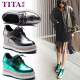缇塔厚底高跟鞋2017春季圆头内增高休闲女鞋子韩版时尚漆皮鞋单鞋