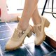 2017春秋季复古玛丽珍粗跟女鞋高跟单鞋女漆皮浅口圆头中跟女鞋子