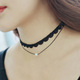 甜美蕾丝双层项链百搭锁骨链颈链配饰品包邮韩国新款珍珠吊坠项圈