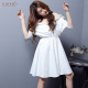 韩版一字领短袖收腰连衣裙子中长款显瘦衬衫女宽松衬衣公主裙春季