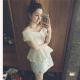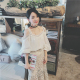TUTUFEEL2017新款夏装超仙蝴蝶结系带吊带蕾丝边露肩雪纺衫上衣女