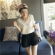 2017韩范清新红白色雪纺吊带衬衫女 泡泡中短袖防晒衬衣 职业女夏