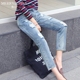 破洞牛仔裤女春夏季2017新款潮韩版九分裤学生铅笔裤显瘦百搭裤子