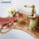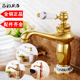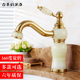 全铜仿古水龙头冷热 欧式金色面盆龙头 单孔台盆洗脸盆玉石水龙头