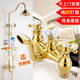 金色花洒仿古淋浴花洒套装 欧式全铜 浴室冷热淋浴水龙头美式镀金