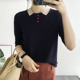 设计感撞色拼接T恤POLO衫式百搭休闲简约女装扣子打底衫2017新款