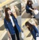 2015春秋新款原宿BF风深色 大码中长款宽松牛仔外套西装领牛仔外