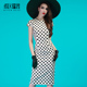 希区瑞普 高端女装 欧美时尚复古气质修身格子连衣裙F0202