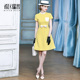 希区瑞普高端复古a字型短袖小洋裙连衣裙女 鹅黄色中裙夏季 F0432