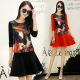 2017新款春装韩版女装套装裙时尚印花针织a字短裙两件套显瘦潮