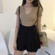 夏季2017新款韩国气质绑带高腰阔腿宽松休闲背带裤女短裤两件套装