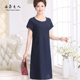 2017中年女装夏装短袖大码妈妈装中老年中长款假两件裙子40-50岁